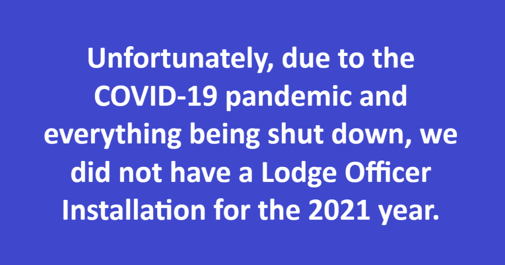 Worshipful Master Joshua R. Ridgley; Senior Warden Ronald D. Croy; Junior Warden Trevor A. Bradley; Treasurer Rodney S. Symonds; Secretary Jon A. Cole; Chaplain Mitchell I. Saret; Senior Deacon Robert G. Bennett; Junior Deacon Terry A. Davis; Senior Steward Charles L. Hildebrand; Junior Steward Hayden M. Cole; Marshal Kenneth D. Lambeth; Tyler Jeffrey A. Craig
